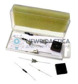 Використовується в кабінеті фізики загальноосвітнього навчального закладу під час проведення лабораторних дослідів з електрики, щодо вивчення будови і принципу дії діодів. Набір складається з наступних діодів: діод випрямний Д226 – 4 шт. діод імпульсний КД521В – 4 шт. діод високочастотний Д223Б – 4 шт. міст діодний КЦ405 – 2 шт.