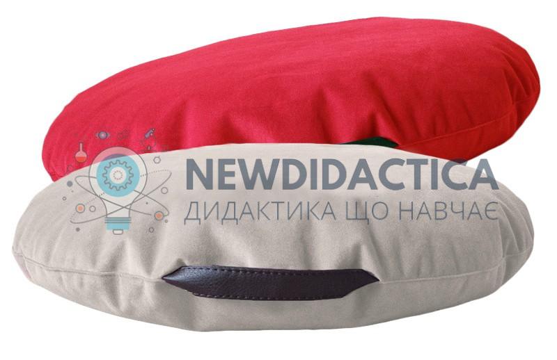Використовується для організації простору в дитячих ігрових кімнатах, кімнатах відпочинку, залі ЛФК, сенсорній кімнаті. Подушки такі яскраві і позитивні, що поруч з ними настрій росте вгору. М‘які та зручні для сидіння. Набір складається з трьох подушок різних кольорів, які мають внутрішній мішок, у який, при необхідності, можна досипати наповнювач. Зовнішній чохол знімається для прання. Допустиме навантаження 60 кг. Розміри: діаметр 50 см, висота 12 см. Матеріал: меблевий велюр, болонья, поролон.