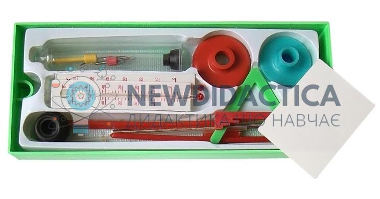 Призначений для проведення лабораторних робіт з тепловим явищам. Набір дозволяє провести наступні роботи: теплове розширення газів, теплове розширення рідин, теплове розширення твердих тіл, теплопровідність металів і інших речовин, теплопровідність рідин, теплопровідність газів, модель термометра, вимір температури. Межі вимірювання температури: -14 ... + 60 °С. Ціна поділки шкали: 2 °С.