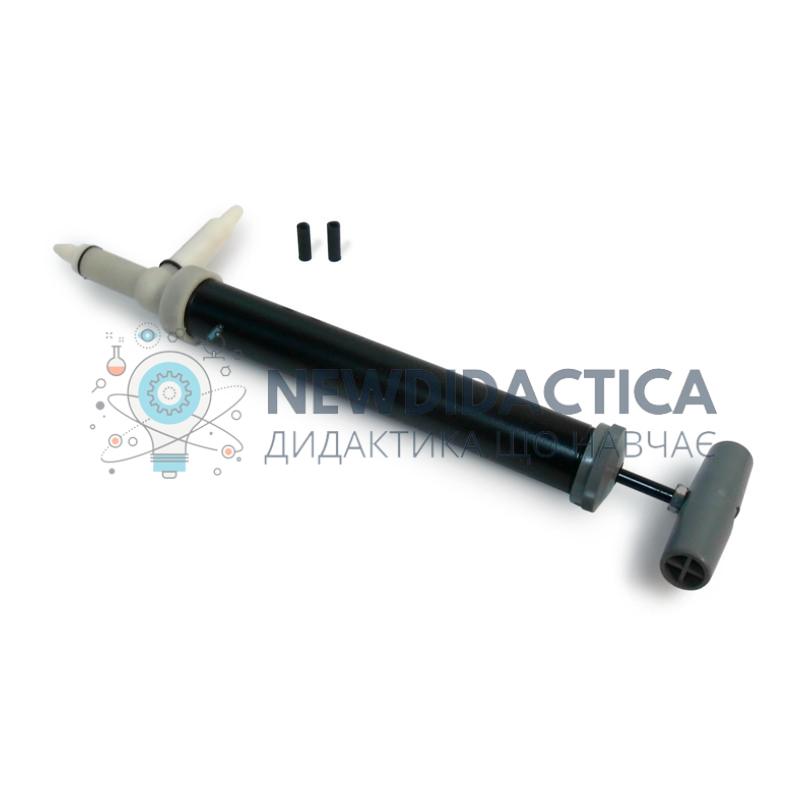 Використовується насос повітряний ручний в кабінеті фізики загальноосвітнього навчального закладу під час вивчення курсу молекулярної фізики і термодинаміки. Прилад застосовується в ряді дослідів, коли потрібно порівняно невелике розрідження або нагнітання повітря. Насос поршневий подвійної дії.Максимальне розрідження: 40 мм рт.ст,Нагнітання: 4 атм.Габаритні розміри: 340 х 85 х 35мм.Вага: 0,4 кг.