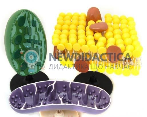 Використовується набір «Органоїди клітини» в кабінеті біології загальноосвітнього навчального закладу під час вивчення розділу «Загальна біологія». Набір містить моделі органоїдів клітини: хлоропласт, мітохондрію та мембрану клітини. Набір містить моделі органоїдів клітини: хлоропласт, мітохондрію та мембрану клітини. Моделі органоїдів виготовлені з пластика та забарвлені в яскраві природні кольори. Розміри моделей приблизно 15...25 см.