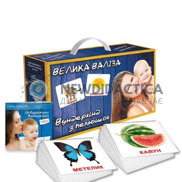 Щоб максимально використовувати вроджену здатність немовляти до пізнання навколишнього світу, ви можете запропонувати йому найцінніший подарунок – Подарунковий набір ламінованих карток Домана у великій та зручній валізі. “Велика Валіза” включає 21 набір великих ламінованих карток українською мовою і подарунок – книгу “Як виростити вундеркінда”. Адже період з народження до трьох років, – найважливіший для розвитку дитини час. Новонароджені і діти раннього віку мають унікальну здатність вчитися без особливих зусиль. Можна звичайно не поспішати, але тоді навчання займе більше часу і вимагатиме більш інтенсивних занять згодом. Як виглядають картки? Вони великі (19, 5 см на 16,5 см). Це важливо для дітей раннього віку, так як при народженні їх зір ще недосконалий Вони виконані з якісного ламінованого картону На одній стороні: різні зображення з підписом Зі зворотнього боку: різні цікаві факти і завдання Картки ідеально підходять для дітей. Вони цікаві малюкам, і перетворюють навчання в захоплюючу гру з батьками. Ці заняття не можна назвати уроком – вони проводяться тільки тоді коли і дитина, і батьки щасливі, розслаблені. Тільки тоді малюк з нетерпінням чекатиме наступного заняття. І тоді, дуже швидко ви побачите результат. Особливості та характеристики: Розмір упаковки: 36 х 21 х 8 см Всього: 420 карток У валізі 21 набор карток з різних тематик У кожному наборі 20 карток Кожен набір упакований окремо в щільний прозорий конверт Всі набори знаходяться в зручній та практичній валізці Розмір карток: 19,5 х 16,5 см Вага: 5,5 кг Вік: з народження і до 8 років Матеріал: якісний ламінований картон щільністю 300 г/м² Картки українською мовою Комплектація: Набір “Свійські тварини” з фактами. У набір входять 20 карток. 240 фактів про свійських тварин та 100 завдань та загадок! Набір “Дикі тварини” з фактами. У набір входять 20 карток. 240 фактів про диких тварин та 80 завдань і загадок! Набір “Екзотичні тварини” з фактами. У набір входять 20 карток. 240 фактів та 60 завдань та загадок! Набір “Породи собак” з фактами. У набір увійшли 20 карток, найвідоміших та найцікавіших породи собак. 200 фактів про собак та 80 завдань і загадок! Набір “Птахи” з фактами. У набір входять 20 карток. 200 фактів та 80 завдань і загадок! Набір “Мешканці водойм” з фактами. У набір входять 20 карток. 200 фактів та 140 завдань і загадок! Набір “Комахи” з фактами. У набір входять 20 карток. 200 фактів та 60 завдань та загадок! Набір “Фрукти” з фактами. У набір входять 20 карток. 140 фактів та 60 завдань! Набір “Овочі” з фактами. У набір входять 20 карток.200 фактів про овочі та 80 завдань і загадок! Набір “Ягоди” з фактами. У набір входять 20 карток. 200 фактів та 80 завдань та загадок! Набір “Дерева” з фактами. У набір входять 20 карток. 240 фактів та 80 завдань та загадок! Набір “Квіти” з фактами. У набір входять 20 карток. 140 фактів про квіти та 80 завдань і загадок! Набір “Природа” з фактами. У набір входять 20 карток. 180 фактів та 60 завдань та загадок! Набір “Космос” з фактами. У набір входять 20 карток. 200 фактів про космос та 80 завдань та загадок! Набір “Лічба” з фактами. У набір входять 20 карток із зображеннями червоних точок в кількості від 1 до 20. На зворотному боці карток ви знайдете 240 цікавих фактів, 60 цікавих завдань і 20 загадок. Набір “Транспорт” з фактами. У набір входять 20 карток. 200 фактів та 60 завдань та загадок! Набір
