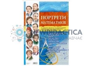 Використовуються портрети видатних математиків світу в кабінеті математики загальноосвітнього навчального закладу для методичного оформлення кабінету. Розмір одного портрету 30*40 см. Комплект містить 12 повнокольорових портретів провідних математиків, їх стислі біографічні відомості: 1. Островський Михайло 2. Погорєлов Олексій 3. Піфагор 4. Мілетський Фалес 5. Келдиш Мстислав 6. Ковалевська Софія 7. Колмогоров Андрій 8. Евклід 9. Лобачевський Микола 10. Гаусс Карл Фрідріх 11. Веєрштрасс Карл Теодор Вільгельм 12. Абель Нільс