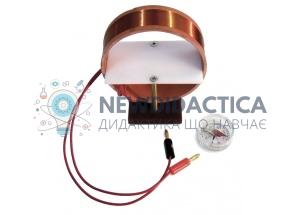Використовується прилад для демонстрації дії електромагнітного поля Землі в кабінеті фізики загальноосвітнього навчального закладу та призначений для проведення практичної роботи щодо визначення величини тангенціальної ( горизонтальної ) складової вектора магнитного поля Землі. Прилад складається з котушки на підставці, вісь якої розташована горизонтально. В середині котушки є столик для розміщення компасу. Технічні характеристики: діаметр котушки 110 мм; кількість витків - 50 шт; вхідна напруга 1 - 4,5 В; габаритні розміри: 120 х 60 х 140 мм; вага: 0,5 кг. Склад: котушка з мідного дроту - 1 шт.; столик-підставка - 1 шт.; компас - 1 шт.