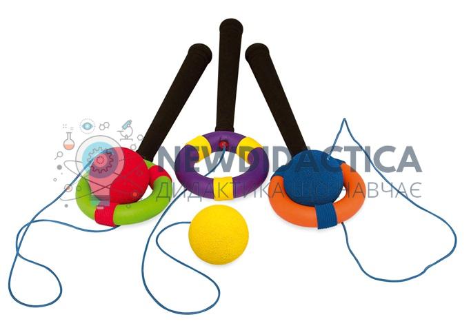 Призначена для розвитку просторової орієнтації, мовлення, комунікації та кмітливості, формування навичок ігрової діяльності, гри по черзі. М'яч розгойдують вперед і вгору на повідку, щоб зачепити його в покритому пінопластом кільці. Кільце має діаметр 11,5 см, куля 70 мм, загальна довжина 38 см. Кожен з 3 кульок має інший основний колір, відповідне кільце - відповідний додатковий колір: червоний / зелений, жовтий / фіолетовий, синій / оранжевий.