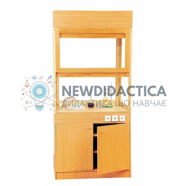 Нижня секція має два відділення зі щитовими дверцятами. У лівому монтується сантехніка для відводу води та хімічних розчинів від мийки, у правому розміщено дві полиці.