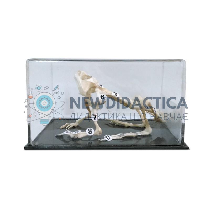 Використовується модель «Скелет жаби» в кабінеті біології загальноосвітнього навчального закладу під час вивчення розділу «Тварини», тема «Клас Земноводні». Модель являє собою природній остеологічний матеріал. Скелет змонтований з урахуванням відтворення природнього положення тіла тварини та захищений прозорим пластиковим ковпаком. Розмір моделі приблизно 20...30 см.