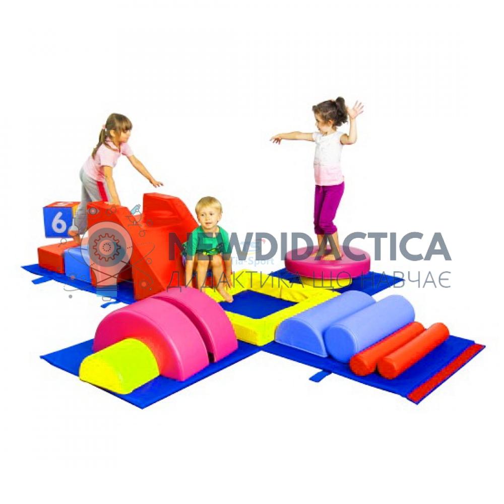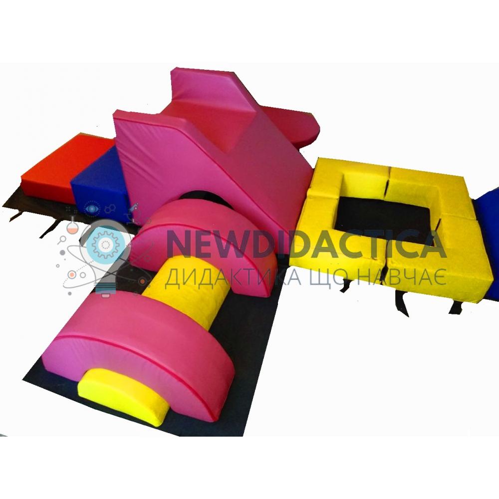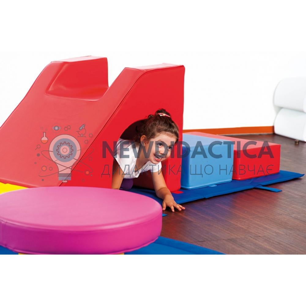Опис: являє собою м'який спортивно-ігровий тренажер для активного фізичного розвитку дитини (балансування, перекиди, перевороти, повзання, стрибки та ін.). Призначений для колективних спортивних змагань, тренувань, навчальних програм фізичного розвитку. Безпечний для користування. Виріб є як окремої ігрової частиною, так і легко поєднується з іншими модульними конструкціями.