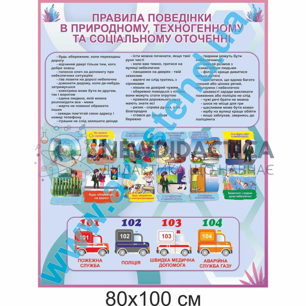 Стенд 'Правила поведінки в природному, техногенному та соціальному оточенні' – 80х100 см