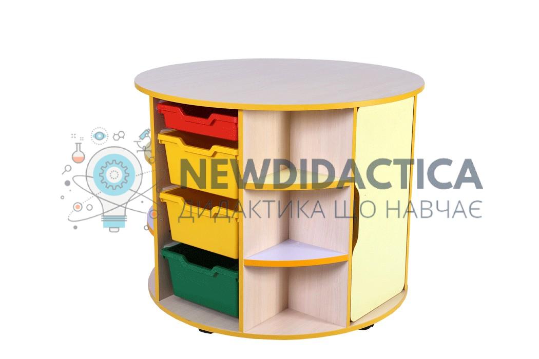 Деревинні деталі столу із ДСП ламінованої товщиною 16 мм, а двері із ДСП ламінованої товщиною 18 мм личкуються ПВХ товщиною 1 мм лише полиці – 0,5 мм.
