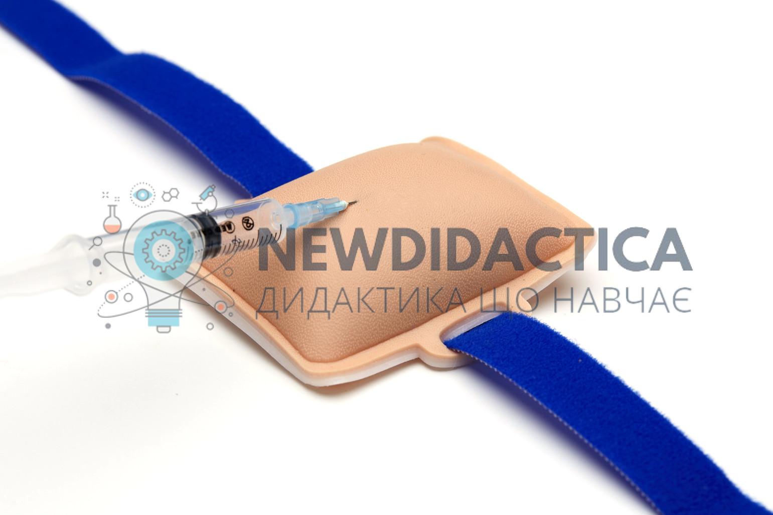 Призначений для відпрацювання навичок підшкірних інʼєкцій. Тренажер для багаторазового використання. Кріпиться на руку що забезпечує високу реалістичність виконання процедури. Змодельовані шари: епідерміс, дерма, підшкірна жирова клітковина, мʼязевий шар. Містить захисну пластину для запобігання травмування голкою. Можна використовувати самостійно (без партнера), поставивши тренажер на стіл (не ковзає по поверхні).