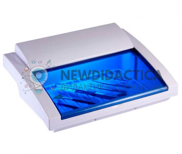 Ультрафіолетовий стерилізатор для інструментів. Всередині стерилізатора інструменти знаходяться на решітці з металу, яка припіднята над дном. Стерилізатор має бактерицидні властивості Важливо! УФ стерилізатори НЕ стерилізують інструмент, а лише дезінфікують. Матеріали, які можна обробляти в УФ стерилізаторах: медична сталь; скло; дерево; кераміка; пластик і т.д.