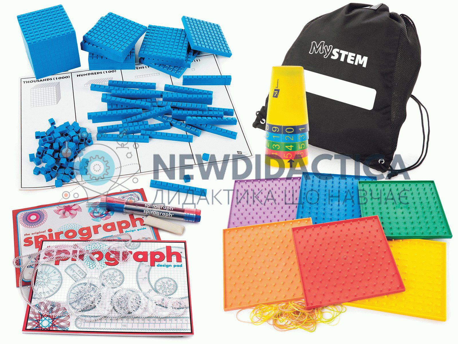 Це математичні елементи є улюбленими для викладання значень, геометрії та алгебри у веселій та інтерактивній формі! Почніть з вивчення значень, зв дапомогою магнітної головоломки для вивчення математики. Кожна деталі має кольорове кодування, щоб відображати значення місця від одиниць до тисяч. Потім перейдіть до набору з визначення розряду,як фізичне представлення числових відношень. Намалюйте власні геометричні шедеври за допомогою комплекту спірографа. Продовжуйте досліджувати геометрію за допомогою геобордів, одночасно створюючи власні фігури для обчислення периметра та площі. Кожен предмет - це практичний досвід для здобувачів освіти, який пропонує безліч варіантів, щоб залучити їх і навчатися на багатьох уроках! Рекомендується для початкової та середньої школи для особистого, дистанційного або гібридного навчання. В комплект входить: Магнітний ціліндр , 6 од.,Веселка геобордів, набір з 6 од,Набір з десяти елементів для визначення розряду числа, 1 комплект,Набір Спірограф , 6 од,Мішечок, 1 шт.Методичні матеріали для занять.
