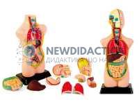Розбірна модель виготовлена з пластмаси та забарвлена в природні кольори. Модель є розбірною, демонструє торс людини з розкритою грудиною, що містить серце, легені, відділи травної системи, печінку, нирки, а також демонструє сагітальний розріз голови.   Виготовлена з пластика та забарвлена в яскраві природні кольори.  Висота 45 см
