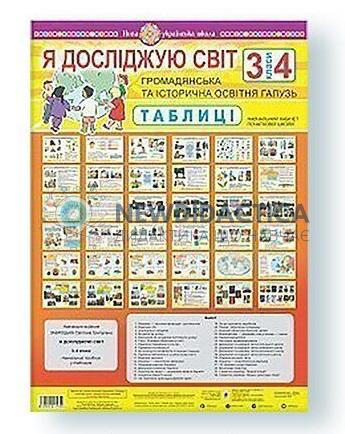 Навчальний посібник у таблицях «Я досліджую світ» для 3-4 класів — елемент дидактико-методичного комплекту, який рекомендується використовувати на уроках під час пояснення, узагальнення й закріплення знань, умінь та навичок учнів. Зміст посібника відповідає Державному стандарту початкової освіти та типовим освітнім програмам з предмета «Я досліджую світ» (громадянська та історична освітня галузь).